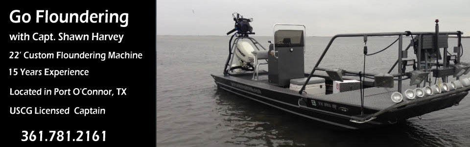 I invite you to come and enjoy an exciting night of guided flounder gigging in Port O'Connor TX. aboard the TANK - a 22' Floundering Machine. You will be safe, dry and comfortable while we guide the bay floor looking for flounder. While floundering you will also see other various species of fish, including; red fish, trout, drum, sheepshead,stingrays,crabs, and much more!